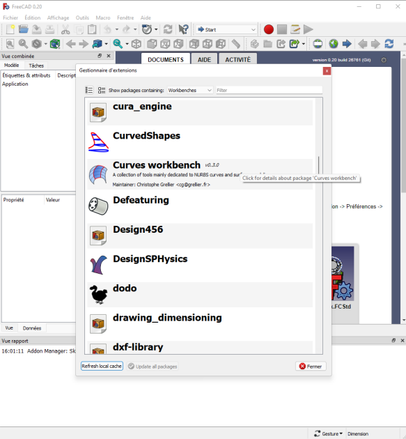 Sélection de l'atelier Curves⚓Sélectionner l'atelier Curves dans la liste⚓L'atelier Beltrami qui permet de générer les profils en trois dimensions s'appuie sur l'atelier Curves. Il faut sélectionner l'atelier Curves parmi la liste proposée.