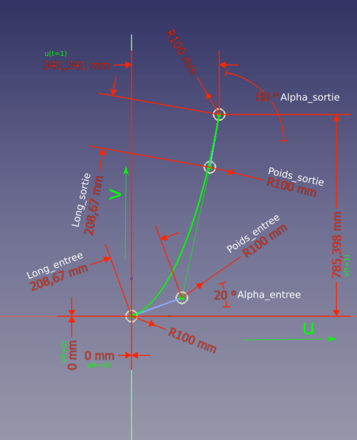 Le plan de la cascade s'exprime dans un espace adimensionnel, pour la représentation graphique dans FreeCAD, on a multiplié ses coordonnées par 1000 mm.