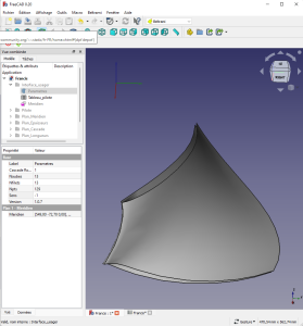 Dès le lancement, un profil hydraulique d'aube est créé dans FreeCAD. Le profil de l'aube comporte 3 types d'information qu'on retrouve dans la vue combinée. Le premier, l'