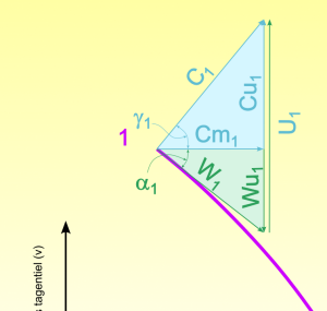 On peut à partir de ces valeurs définir les triangles des vitesses à l'entrée de la roue.