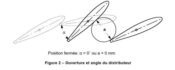 L'opération d'une turbine passe par une commande de l'ouverture en vue d'obtenir le point d'opération souhaité. À la valeur de l'ouverture correspond une position dans la course du servomoteur. La relation entre les deux est strictement géométrique et particulière à la réalisation du prototype[5].