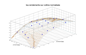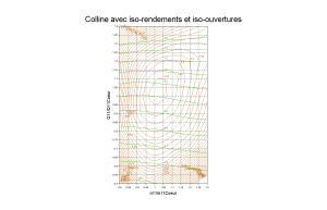 Par une vue en plan, on obtient la colline classique. Comme pour les iso-rendements, les iso-ouvertures sont obtenues par leur propre représentation analytique et donc leur propre interpolateur.