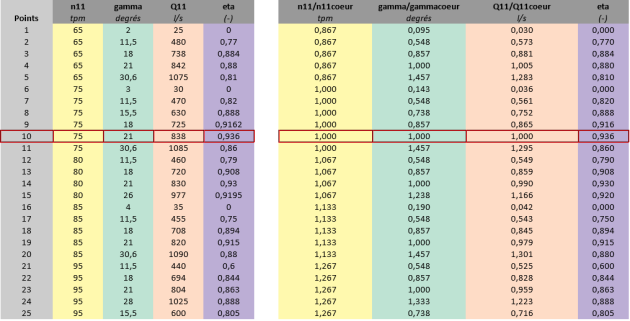 Entre les points de mesure, il peut être nécessaire de connaître les valeurs. Par exemple, on veut connaître le rendement à une puissance précise pour une raison contractuelle, ou on veut simuler un phénomène transitoire qui, par pas de temps, nous amène à des combinaisons de chute, vitesse de rotation et débit entre les points mesurés.