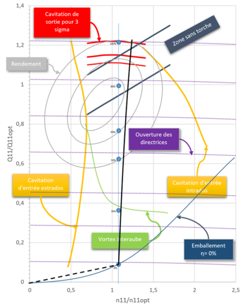 Le plan opération : il s'agit de prédire le comportement de la turbine dans un plan d'opération chute-ouverture :