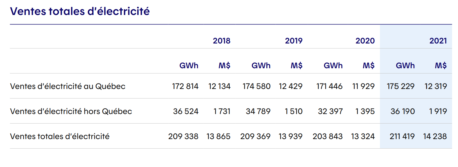 En 2021, les ventes dépassent les 210 TWh pour une capacité de production de 37 247 MW.