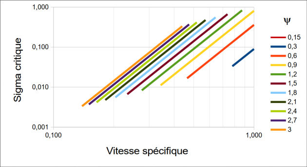 On observe que sur le graphique précédent, il n'y a pas de correspondance directe entre la vitesse spécifique et le sigma critique. En fait, pour y arriver, il faut déterminer la vitesse de rotation qui permet alors d'associer une vitesse spécifique à un sigma critique.