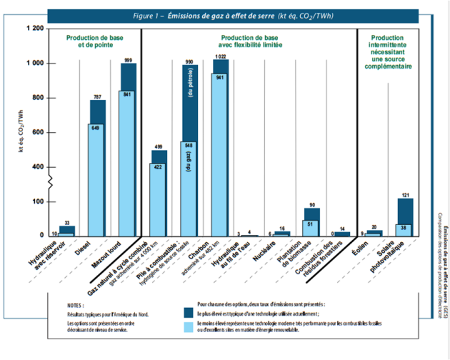 Voici une autre source d'information confirmant les différentes émissions de GES selon le type d'énergie.