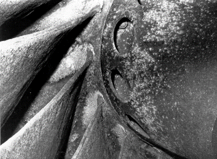 Ces tourbillons sont une source d'instabilité parce qu'ils sont successivement excités par la torche de charge partielle qui elle tourne plus lentement que la roue et balaye ainsi chacun des vortex inter-aubes. Ceux-ci se gonflent momentanément sous la dépression causée par la torche créant ainsi une impulsion mécanique additionnelle sur une aube à la fois. Le chargement dynamique résultant des instabilités peuvent amener la fissuration de l'aubage très rapidement. Un apport d'air amont peut parfois atténuer ces sollicitations.