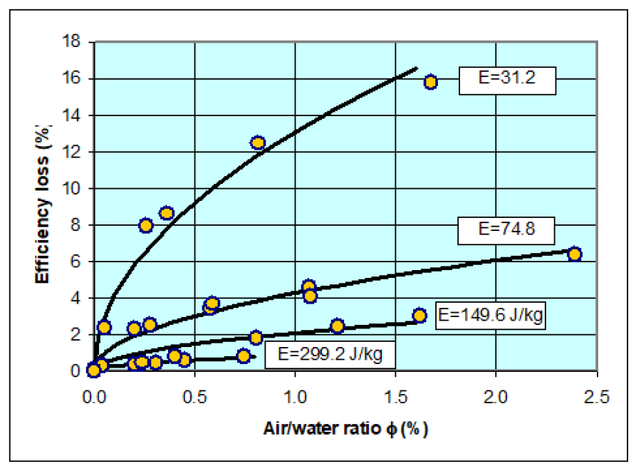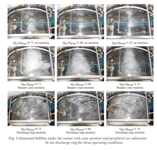 L'admission d'air en quantité significative affecte le fonctionnement de la turbine. Lors d'essais sur l'aération centrale on a observé une perte de rendement avec l'augmentation de la quantité d'air.