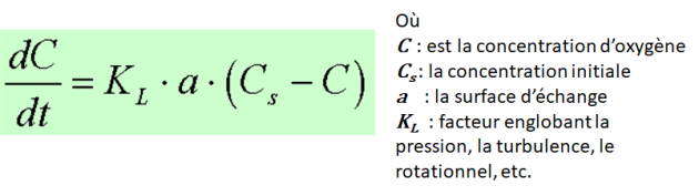 En gros la variation de la concentration d'oxygène dans l'eau répond à l'équation suivante :