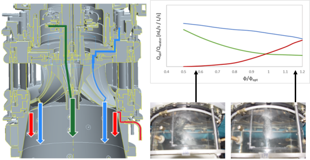 L'amélioration de la performance de la turbine va de pair avec une meilleure dissolution de l'oxygène. Des bulles plus petite et mieux distribuées dans l'écoulement vont dans le sens d'une meilleure dissolution. La dynamique entre la dissolution et la perturbation de l'écoulement n'a pas été étudiée jusqu'à maintenant de même la transposition de la population de bulle (dimension vs quantité) suit ses propres règles, il faudra probablement tenir compte de la tension superficielle.