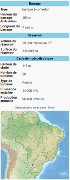 « Les deux dernières des vingt unités de production électrique démarrèrent respectivement en septembre 2006 et mars 2007, amenant la puissance de production à 14 000 MW et achevant la centrale. L'augmentation de la capacité permet désormais de conserver 18 unités en production en permanence pendant que 2 autres sont arrêtées pour maintenance. À cause d'une clause dans le traité signé entre le Brésil, le Paraguay et l'Argentine, le nombre d'unités en production simultanément est limité à 18. »