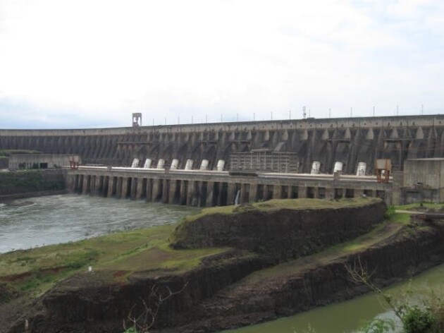 « En comparaison, toute l'eau des chutes d'Iguazú ne fournirait assez de puissance que pour alimenter 2 des 18 unités génératrices du barrage. »