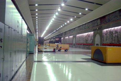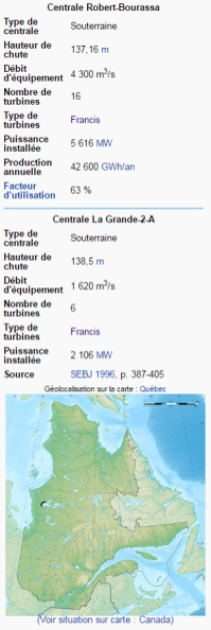 « La centrale Robert-Bourassa, anciennement nommée centrale La Grande-2 ou LG2, est une centrale hydroélectrique souterraine construite au PK 112, à environ 6 km en aval du barrage. Avec une puissance installée de 5 616 mégawatts, cette centrale est la plus puissante du réseau d'Hydro-Québec. C'est aussi la plus grande centrale hydroélectrique souterraine au monde. Elle a été inaugurée le 27 octobre 1979 à 15 h 33 par le premier ministre du Québec René Lévesque, en présence de 3 000 invités. »