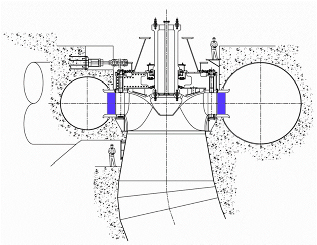 Les avant-directrices dont l'ensemble constitue l'avant-distributeur corrigent si nécessaire le tourbillon créé par la bâche, mais a surtout un rôle mécanique en reprenant en les effort de pressions communiqués par la bâche aux flasques de l'avant-distributeur.