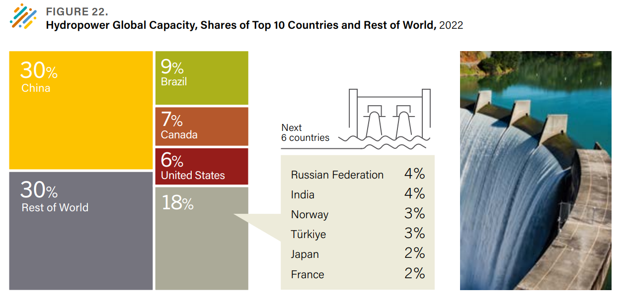 Puissance et production hydroélectrique par pays en 2022