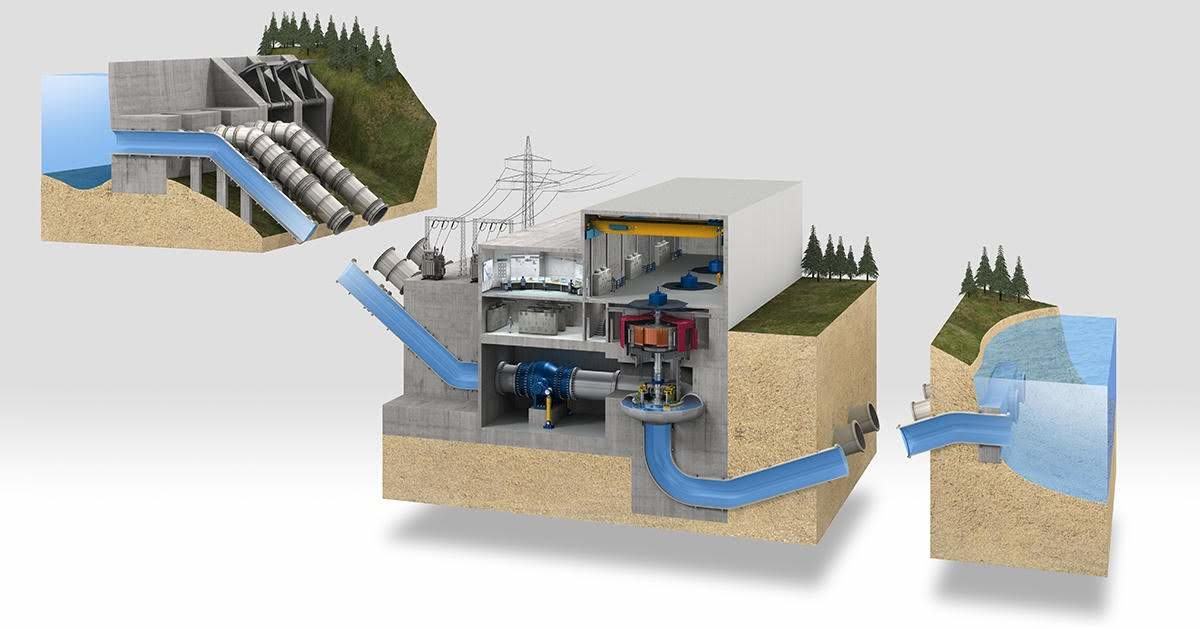 Vue en coupe d'une centrale hydroélectrique