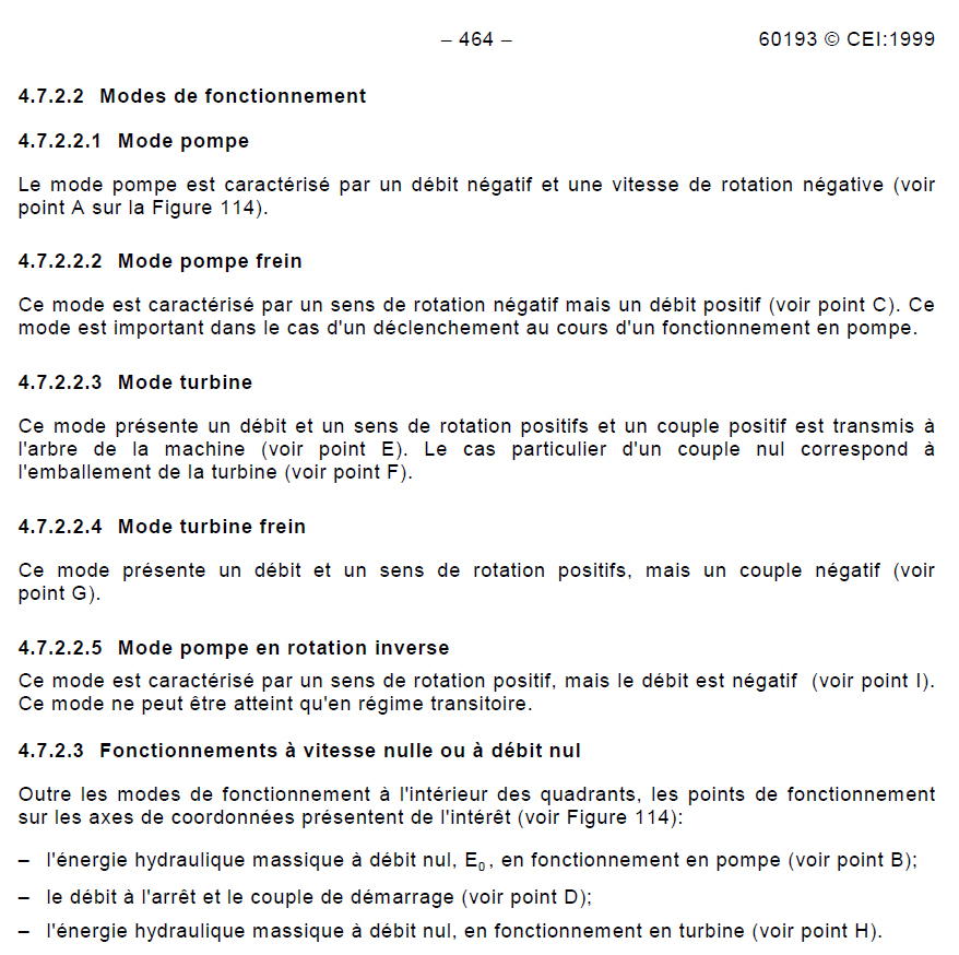 Les 4 quadrants du fonctionnement d'une turbine