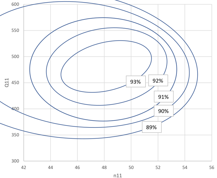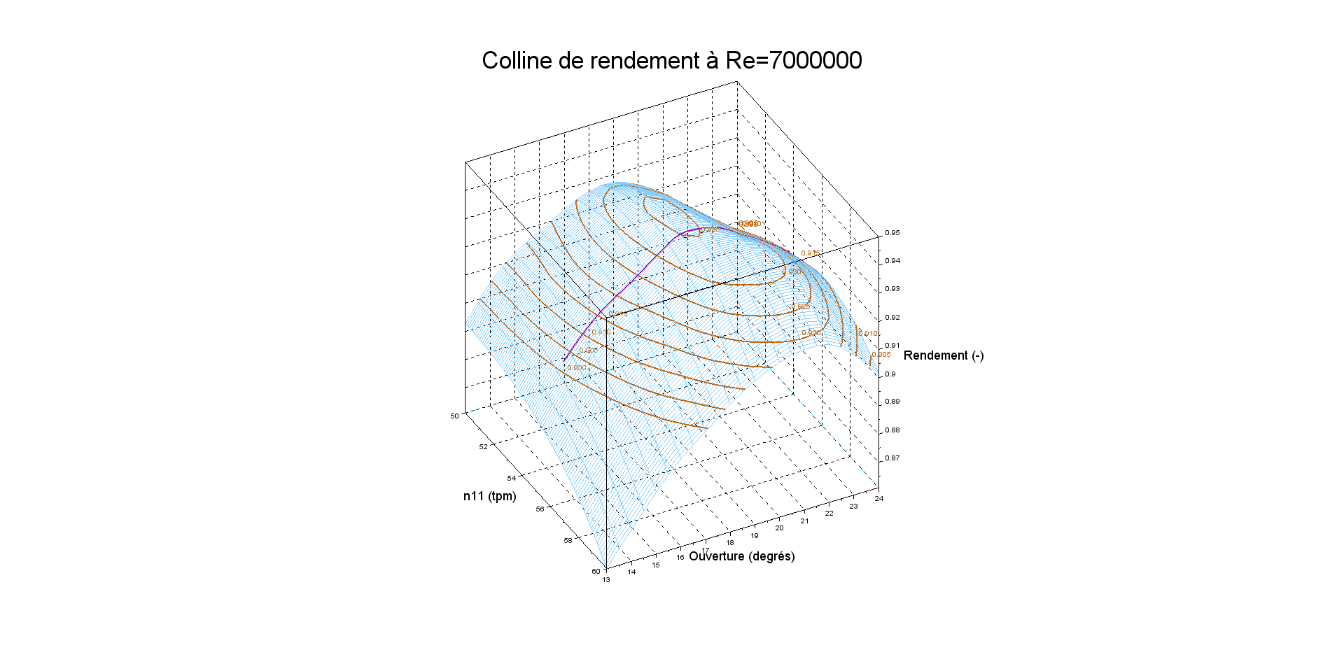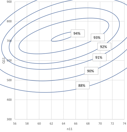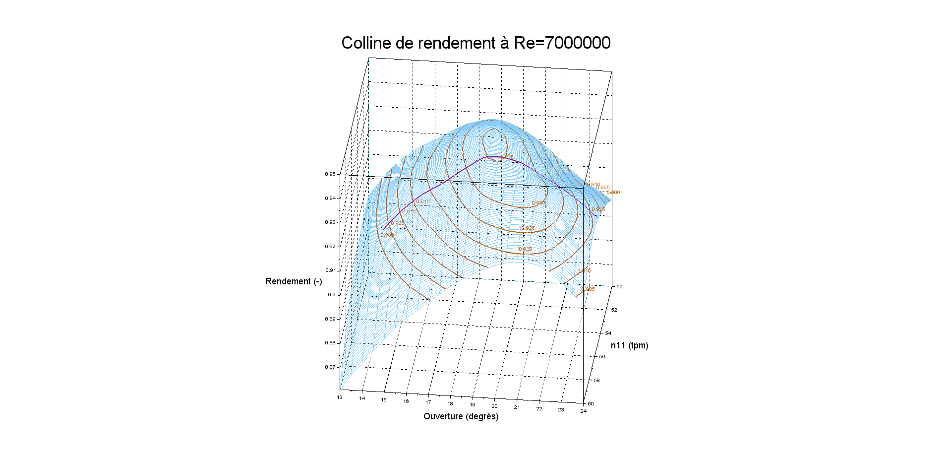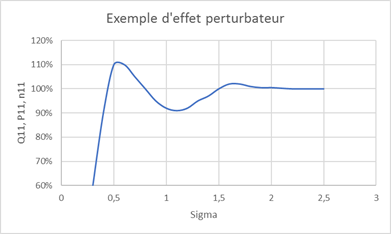 Essai modèle montrant la perte de rendement à Q11 constant sous différentes chutes
