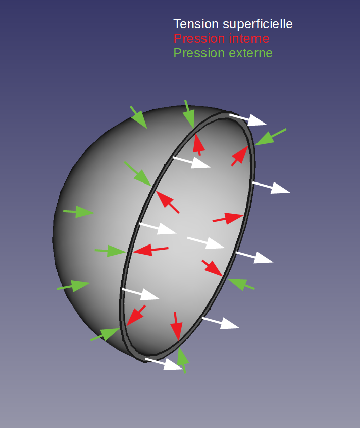 Équilibre des pressions interne,externe et de la tension superficielle d'une bulle