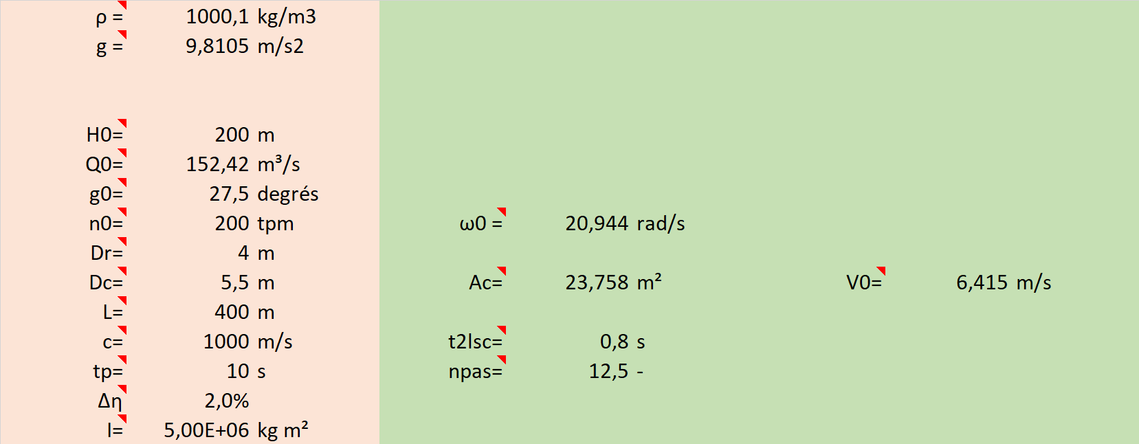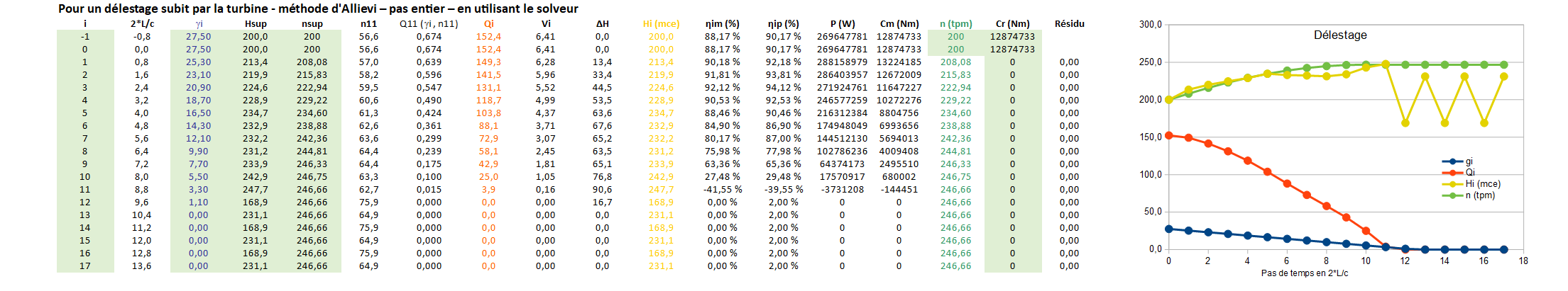 Calcul simplifié d'un transitoire de turbine avec un tableur