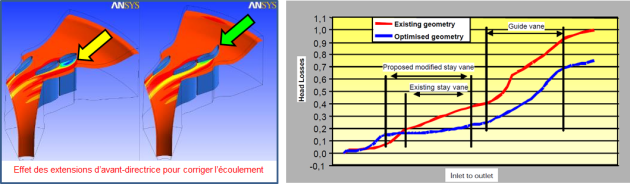 Généralement, les directrices existantes sont en acier doux et l'acier inox 13-4 permet tolérer l'augmentation des contraintes. Sur modèle réduit, l'augmentation des performance est de l'ordre de 0.5%.