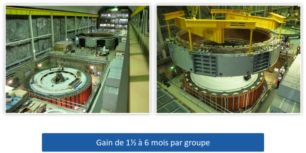 Par une conception appropriée permettant l'assemblage de l'alternateur sur la plage de montage de la centrale, on peut réduire les temps de retrait de production de 6 mois à 45 jours.